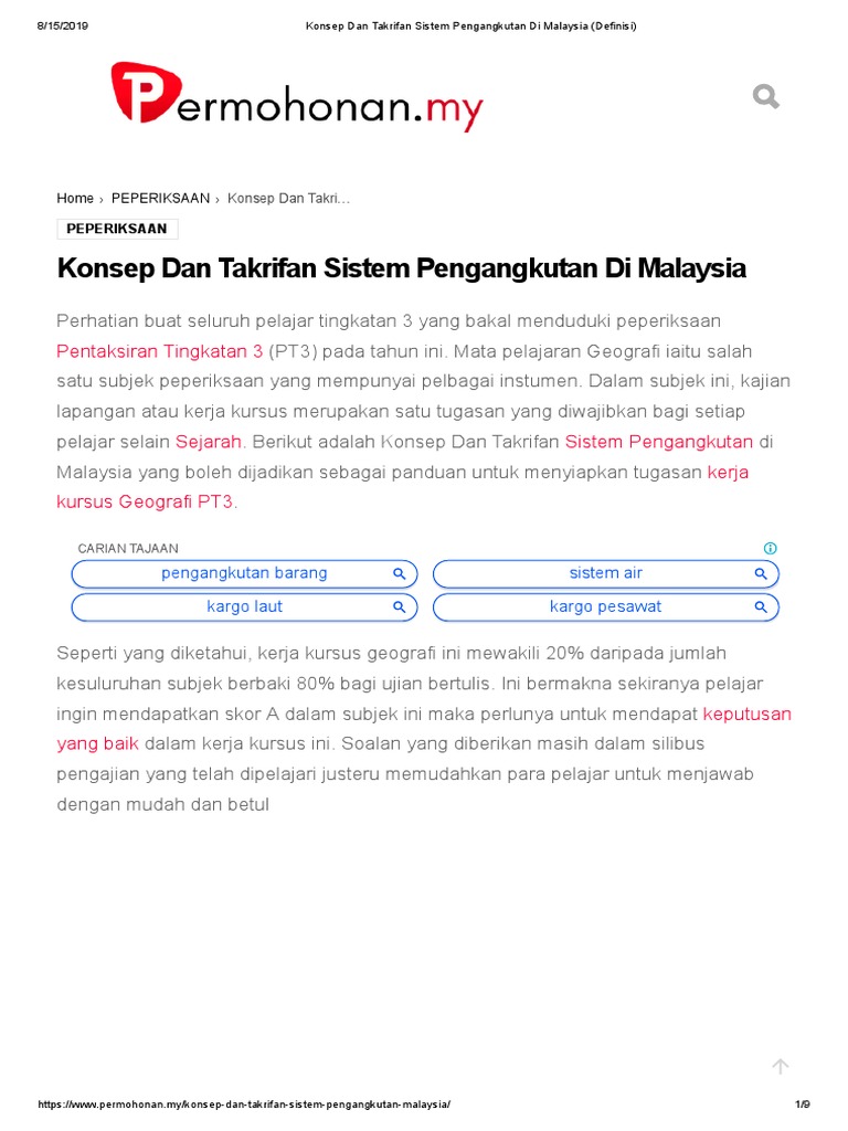 Konsep Dan Takrifan Sistem Pengangkutan Di Malaysia Definisi Pdf